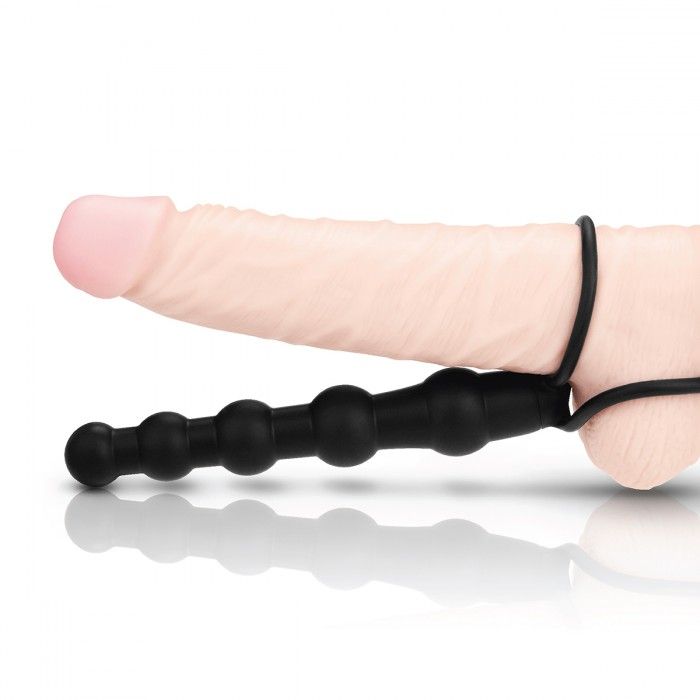 Чтобы подарить партнёрше двойное проникновение, не нужно привлекать кого-то ещё. Эта чёрная анальная ёлочка, будучи закреплённой на пенисе при помощи петли и подхвата для мошонки, станет такой же частью вашего тела, как руга или нога. Вы сможете ловко управлять ею, одновременно погружаясь в лоно и анус любимой. Её стоны, фаллостимуляция и возбуждающее сдавливание… ммм, оргазм уже не остановить!