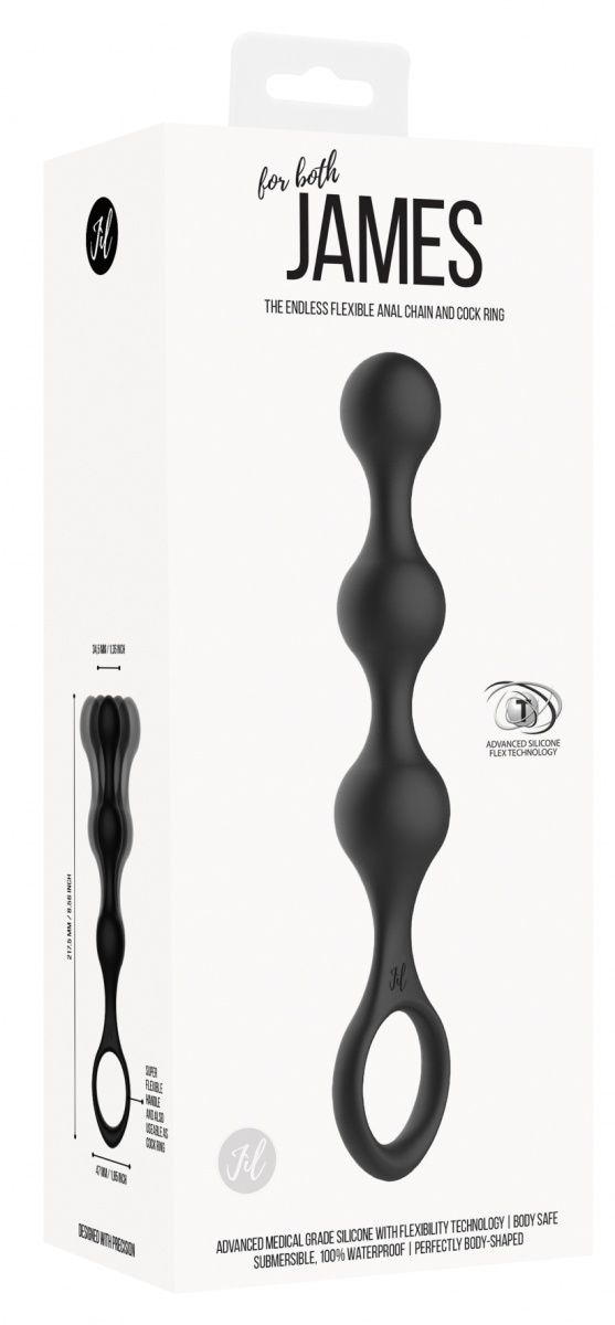 Черная насадка на пенис для двойной стимуляции Jame. Эта анальная цепочка предназначена для получения максимального удовольствия от двойного проникновения. Мужчине достаточно зафиксировать насадку на основании члена, чтобы после войти в партнёршу и одновременно ввести в попку анальную ёлочку. Эта роскошная анальная цепочка состоит из 3 шариков эргономичной формы постепенно возрастающего размера. Может использоваться не как насадка, а как обычная анальная ёлочка. Рабочая длина - 16 см., диаметр - 2 см. Диаметр кольца - 3,5 см.