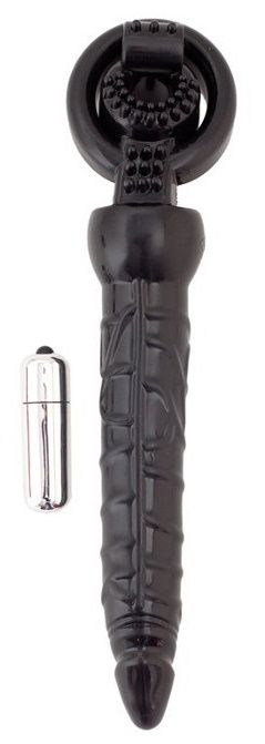 Эта насадка на пенис уникальна! Она не только усиливает эрекцию, обжимая основание пениса мужчины и безостановочно вибрируя. Она еще позволяет стимулировать анус сексуальной партнерши! Введите свой пенис ей в лоно, а гибкий стимулятор, также выполненный в форме члена с рельефом, в попку! Двойное проникновение и восхитительную эрекцию девушка точно оценит по достоинству! Длина фаллоса - 17,5 см., диаметр - 2,5 см.