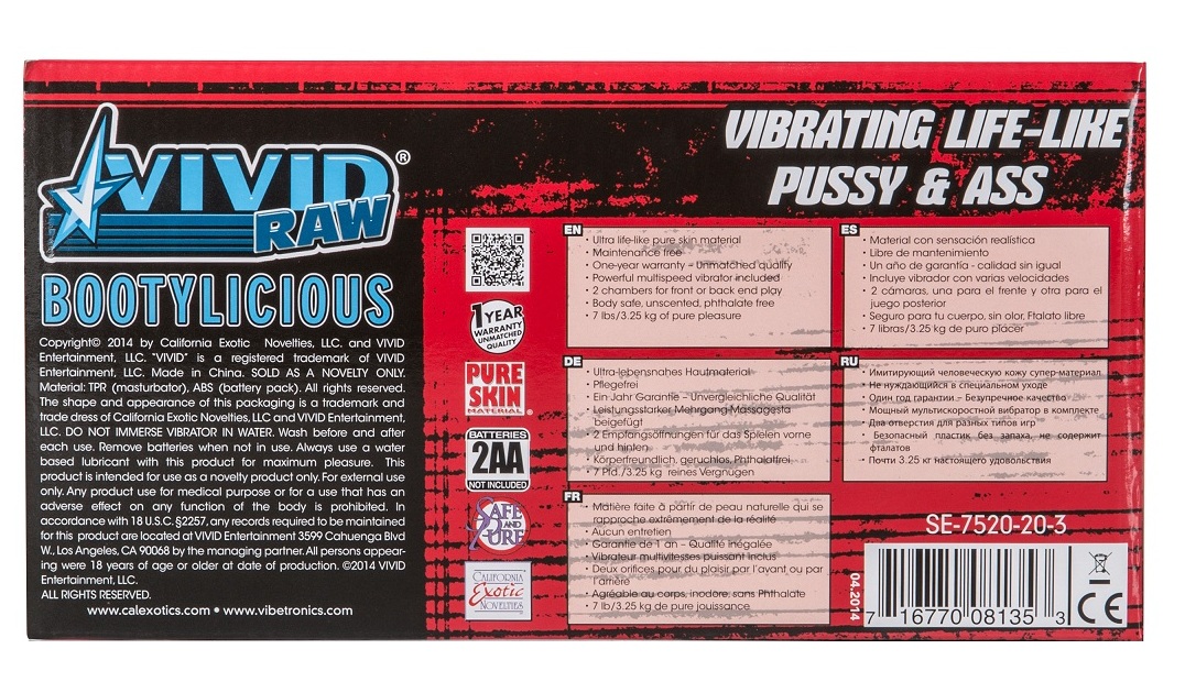 Мастурбатор реалистичный Vivid Raw Bootylicious с вибрацией. Вибрацию обеспечивает вибропуля с выносным пультом управления.