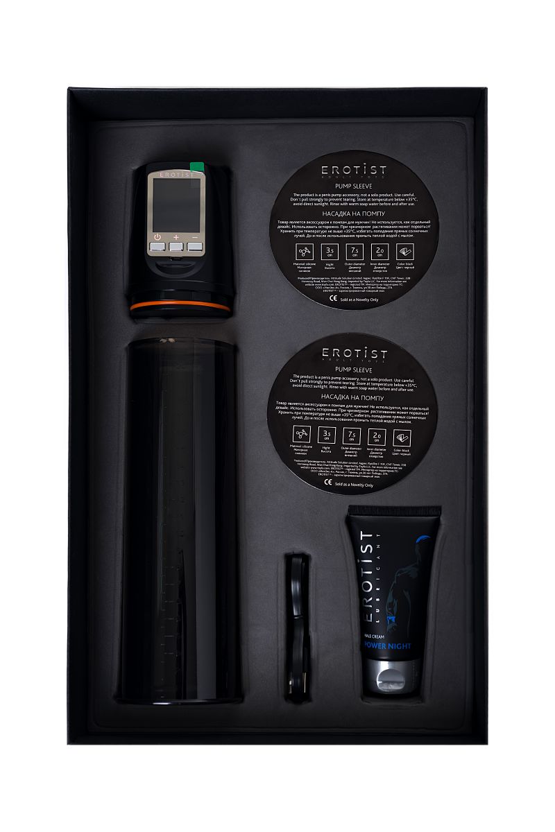 Первый полностью автоматический вакуумный тренажер для мужчин Erotist ToZoom — эффективное устройство для увеличения полового члена, поддержания мужского здоровья и улучшения качества эрекции. Работа на основе вакуумных технологий. Erotist ToZoom представляет собой прозрачную колбу, в которой с помощью вакуума создается разрежение воздуха. Уникальный автоматический режим с 4 программами. Значительно упрощает процесс тренировок. Вы лишь выбираете комфортную программу и нажимаете кнопку, дальше тренажер все делает за вас. Дополнительный ручной режим помогает настроить тренажер под индивидуальные особенности. Вы сами контролируете свои занятия и устанавливаете подходящие значения. Для вашего удобства разработаны три курса тренировок: Fast Power - для мощного кратковременного увеличения члена, Men s Health - для профилактики здоровья и Max Size - для долговременного увеличения члена. Видимый результат уже после 15 минут применения - ваш член увеличится в размере. Этот эффект будет держаться в течение 1-2 часов. Постоянный результат достигается за счет регулярных упражнений. Стань мощнее с Erotist ToZoom!