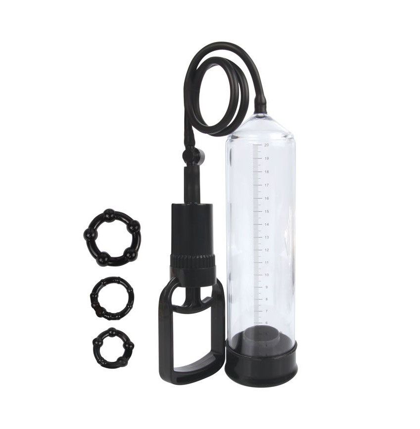 Регулярное использование помпы способствует увеличению мужского «достоинства». Специальные упражнения с применением тренажера обеспечивают приток крови к тканям полового члена, что повышает тонус мышц и эластичность кожи. Изделие состоит из прочной пластиковой колбы с разделительной шкалой, специального уплотнителя для прижимания ее к телу и удобного насоса. Эрекционные кольца способствуют получению продолжительной эрекции и обеспечивают долгий половой акт. Они прекрасно растягиваются и легко надеваются на половой член. Различные «выпуклости» на поверхности изделий добавляет остроты ощущениям. Длина колбы - 20 см., диаметр - 5,5 см.