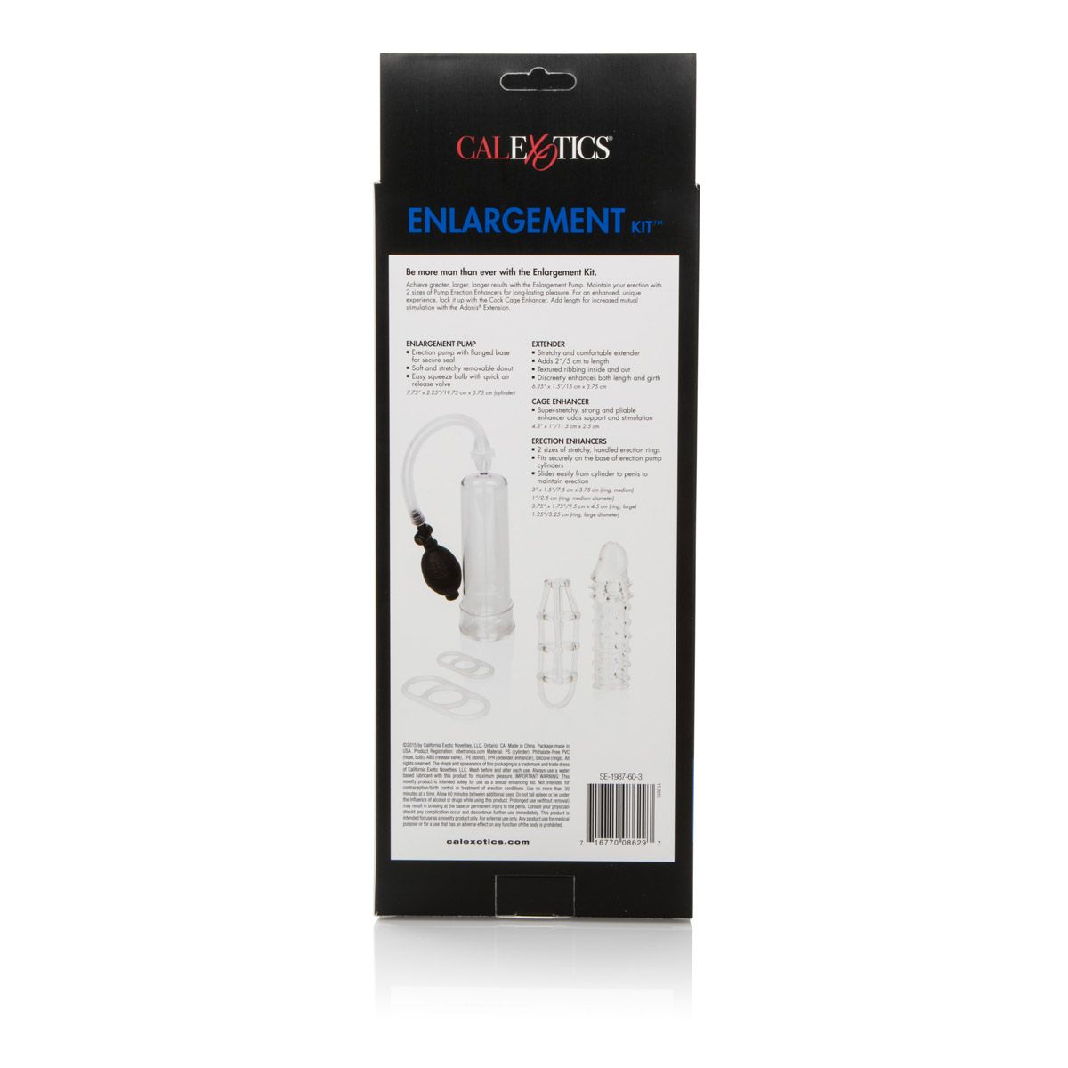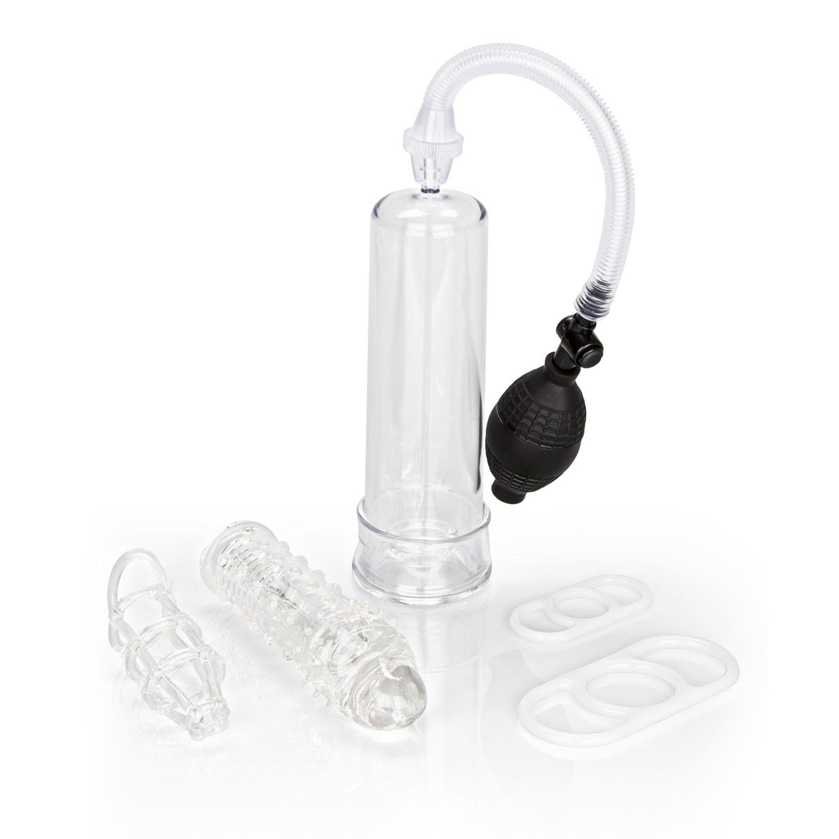Эротический набор His Enlargement Kit для мужчин. Нежный вакуумный массаж будет стимулировать приток крови, за счет чего повыситься эластичность тканей и тонус сосудов. Можно использовать помпу непосредственно перед половым актом, чтобы добиться максимальной эрекции. Чтобы сохранить эффект, можно использовать одно из идущих в комплекте эрекционных колец, которое будет препятствовать оттоку крови.Идущие в комплекте ребристые насадки окажут дополнительное стимулирующее воздействие и сделают тренировки незабываемо приятными. Вибрация добавит ощущений. В комплекте: помпа, два эрекционных кольца, две насадки на пенис. Работает от 6 батареек типа LR44. В комплекте 12 шт. Насадка увеличивает длину пениса на 5 см. Длина помпы - 19,75 см.