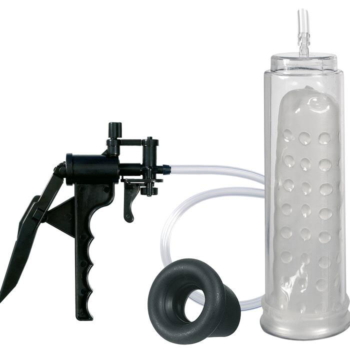 Вакуумный массажер-помпа для мужчин. Создает хорошую степень разрежения в колбе за счет удобного ручного механизма выкачивания воздуха. Силиконовая насадка с мягкими шишечками внутри колбы дополнительно стимулирует половой член и способствует возникновению более полной эрекции. В комплекте прилагается насадка на помпу из латекса, которая сделает использование помпы еще более приятным.