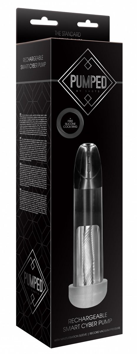 Rechargeable Smart Cyber Pump with sleeve - перезаряжаемая автоматическая вакуумная помпа с 3 скоростями всасывания. Всего одним нажатием кнопки помпа осуществит полный интеллектуальный цикл и одновременно запишет максимальное давление вакуума. В комплект входит специализированная вставка с эффектом лупы. Помпа заряжается через специальный аккумуляторный USB-кабель и может быть подключен практически в любом месте. Просто подсоедините идущий в комплекте шнур к изделию и совместимому порту компьютера или USB-адаптера (приобретается отдельно). Полная зарядка занимает 120 минут, ее достаточно для беспрерывной работы в течение 120 минут. Рабочая длина - 20 см. Внутренний диаметр - 6,1 см. В комплекте: помпа, эрекционное кольцо.