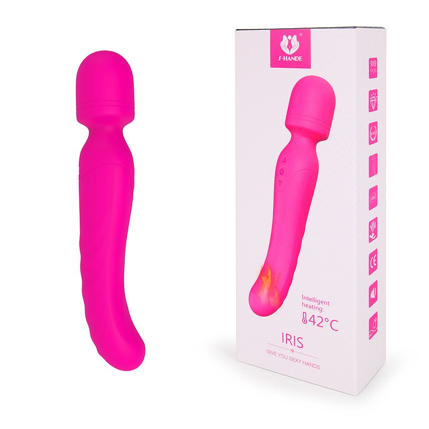 Ярко-розовый двусторонний вибратор IRIS с нагревом. Верхняя часть служит для клиторального массажа и воздействия на внешние эрогенные зоны. Нижняя часть нагревается до 42 градусов и служит для воздействия на стенки лона и точку G. 9 режимов вибрации. Минимальный диаметр - 3,4 см.