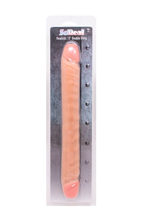 Телесный двусторонний фаллоимитатор SO REAL REALISTIC 13INCH DOUBLE DONG. Богатый рельеф поверхности.