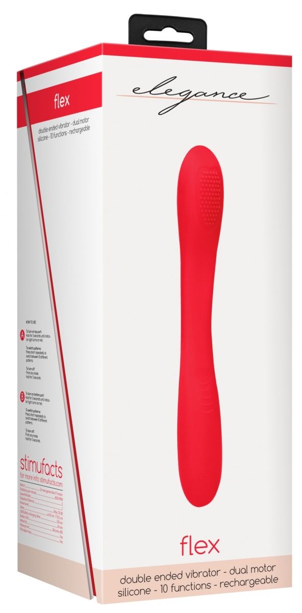 Двусторонний вибратор Flex гарантирует получение удовольствия разными способами благодаря своей необычайной гибкости! Может доставить одновременно своей хозяйке анальные и вагинальные ласки. Имеет 2 мощных мотора, 3 скорости вибрации и 7 режимов пульсации. Имеет рельефные пупырышки с одного конца и кнопки управления режимами вибрации с другого. Заряжается при помощи USB (есть в комплекте).