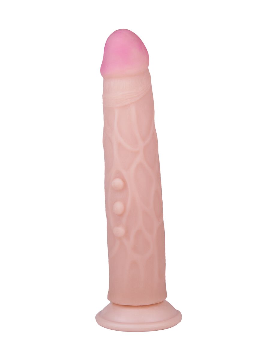 Большой фаллоимитатор подарит вам море удовольствия и феерических оргазмов. Сделан из реалистичного материала неоскин, иначе именуемого как «киберкожа», поэтому по ощущениям он на 100% напоминает настоящий пенис. Для дополнительной стимуляции вагины предусмотрены особые шишечки на имитаторе и венозный рельеф. Чтобы вы могли использовать игрушку в любых позах, и это было максимально удобно, есть специальная присоска, которая крепится к абсолютно любой гладкой поверхности.