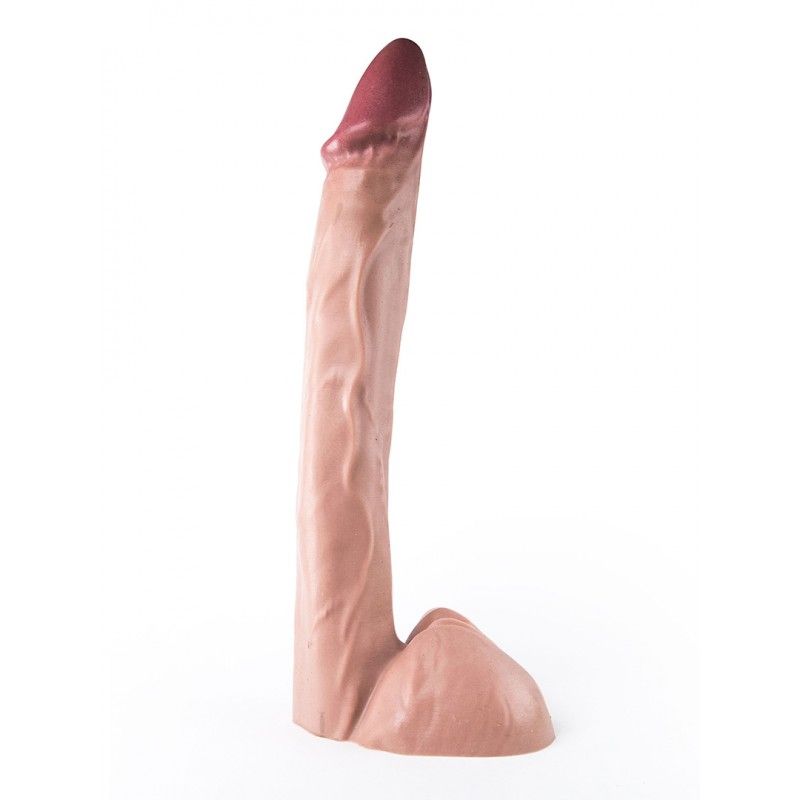 Фаллоимитатор на плоской подошве, большого размера. Имеет форму члена с ярко-выраженной головкой, имеет мошонку. Необычайно приятный, рельефный, выполненный из материала, передающего эффект мягкой реалистичной текстуры кожи, не имеет швов. Рабочая длина - 27 см.