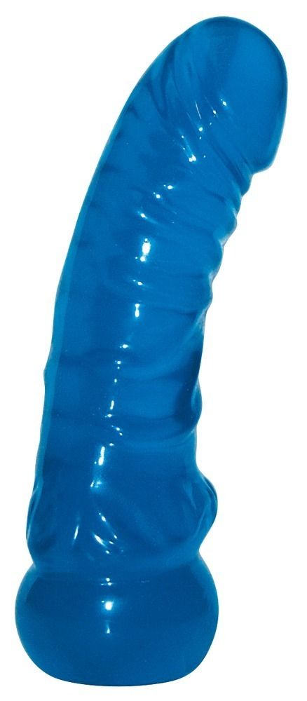 Фаллоимитатор синего цвета выполнен из геля и удивляет своей естественной формой и реалистичными элементами.