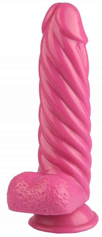 Розовый реалистичный винтообразный фаллоимитатор на присоске