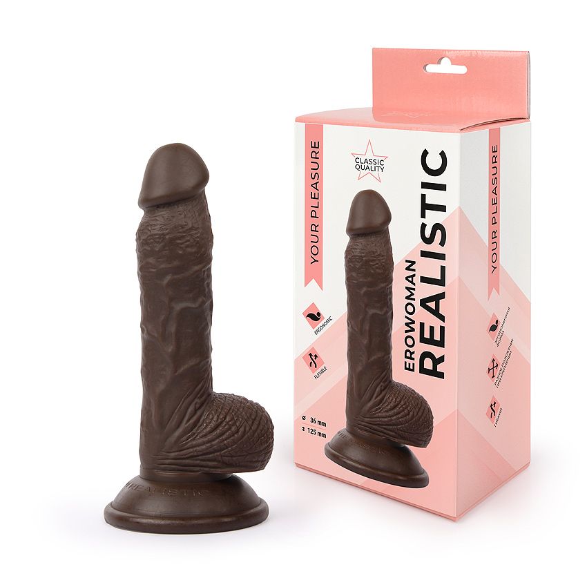 Коричневый реалистичный фаллоимитатор на присоске Bior toys Erowoman ER-30054-1