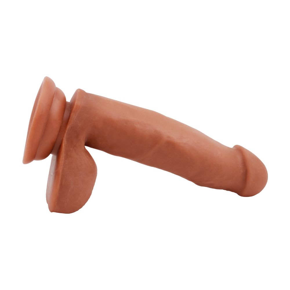 Фаллоимитатор с мошонкой на присоске. Ярко выраженная головка. Гибкий стержень внутри! Двойная плотность материала!