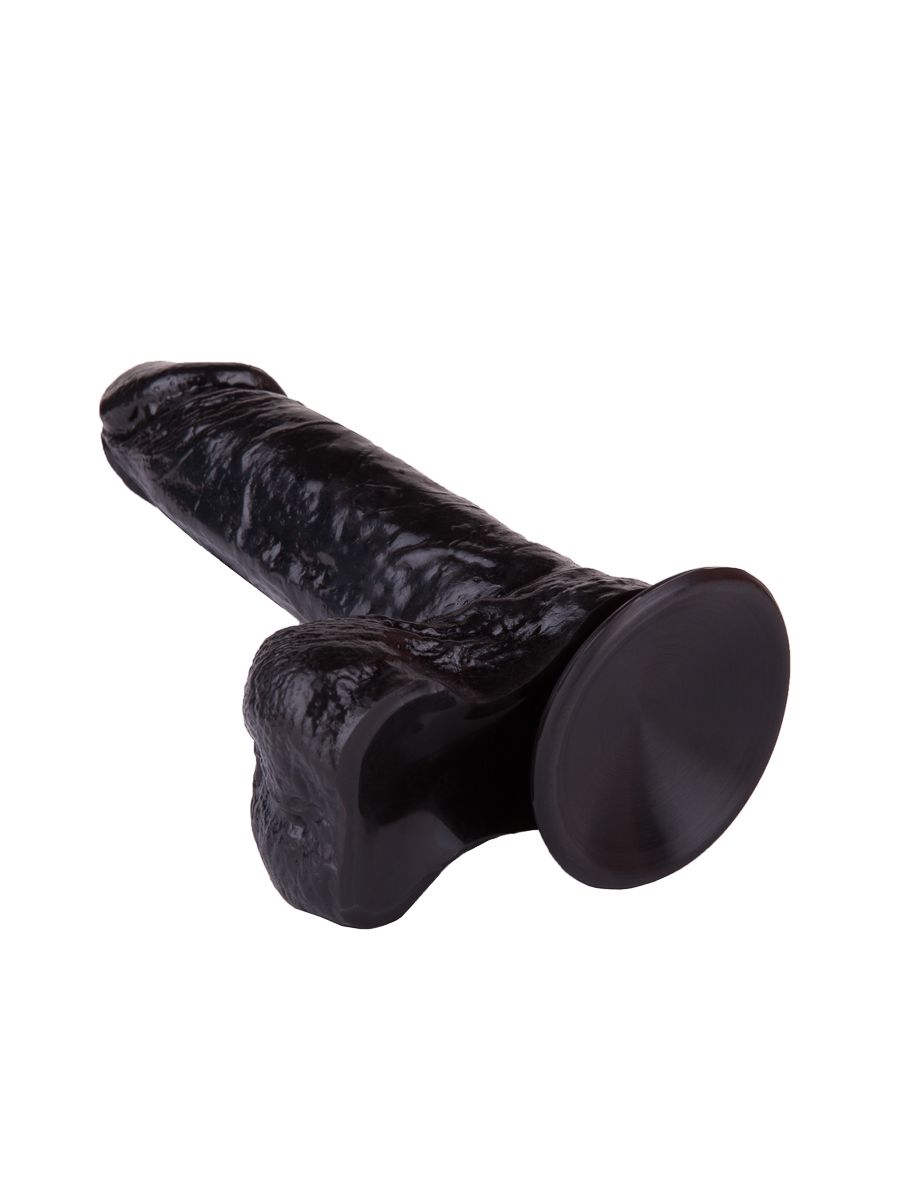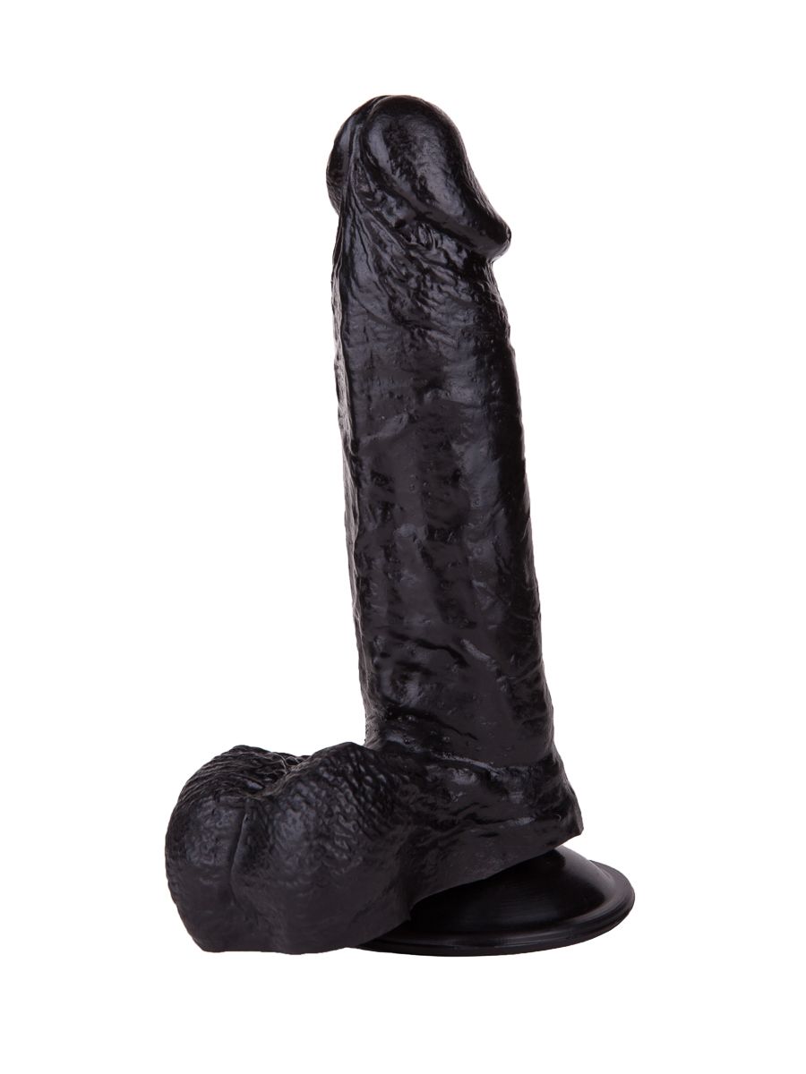 Чёрный-чёрный податливый ствол из упругого материала, покрытый тонкими венками… Крупная, чётко очерченная головка и большая мягкая мошонка… Глядя на эту реалистичную игрушку, невозможно удержаться от соблазна и не попробовать её ласк. Зафиксировав фаллоимитатор при помощи присоски на ровной твёрдой поверхности, вы можете насладиться чувственными проникновениями в лоно и яркими ощущениями от массажа вагинальных стеночек.