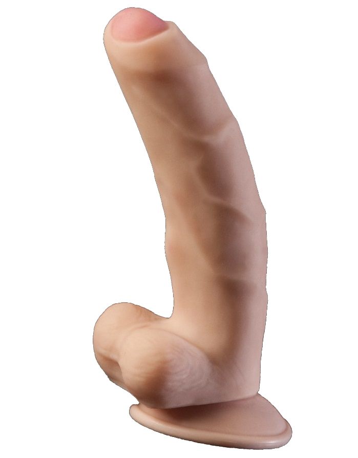 Телесный фаллоимитатор с полузакрытой головкой. На присоске.