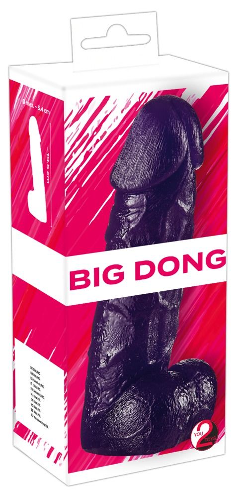 Фиолетовый фаллоимитатор Big Dong. Имеет пышную мошонку в основании.