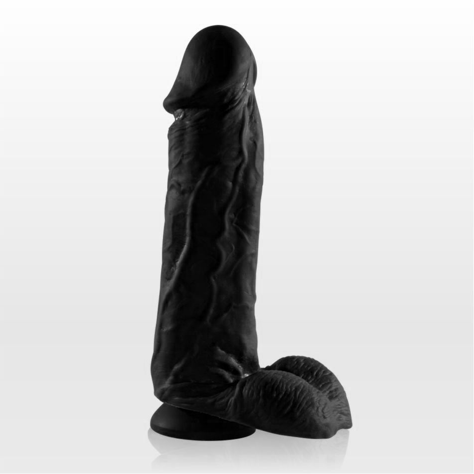 Чёрный фаллоимитатор с удлинённой мошонкой и присоской