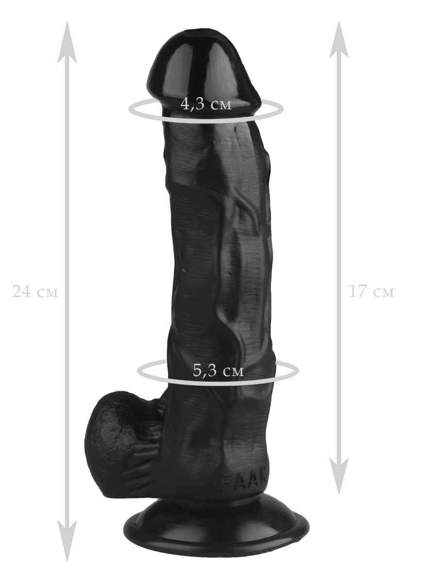 Чёрный реалистичный фаллоимитатор на присоске Сумерки богов 1015-65 BX DD (24 см)