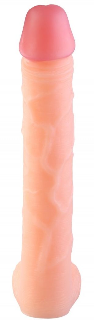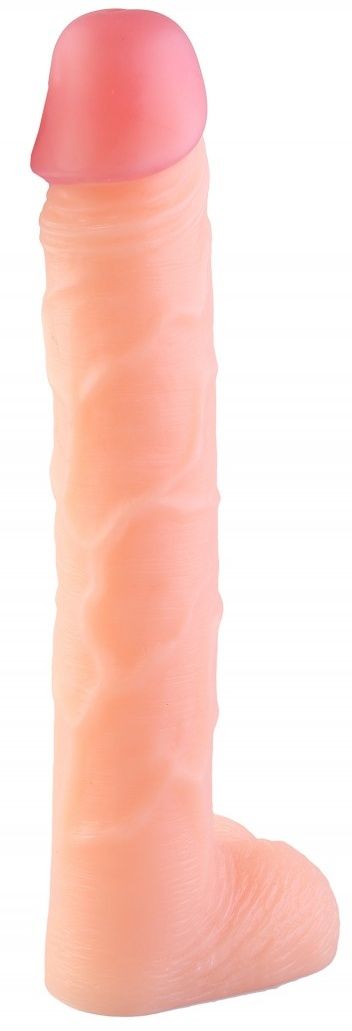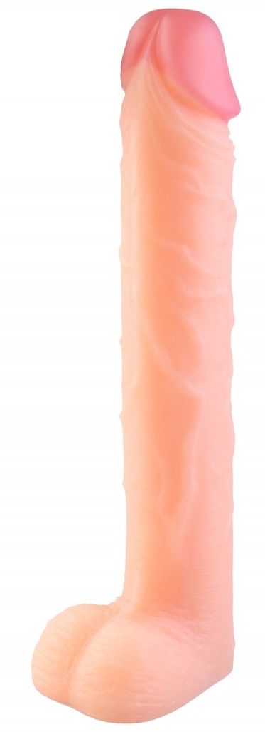 Это невероятно гигантская секс-игрушка для ценителей внушительных размеров члена. Изделие имеет реалистичный внешний вид: текстурированная выпуклыми венами поверхность, ярко выраженная головка и крупная мошонка в целом выглядят в точности, как настоящий пенис мужчины. Вы сможете ощутить не только ощущение заполненности, но и приятную тяжесть. Рабочая длина - 44 см. Минимальный диаметр - 6,7 см.