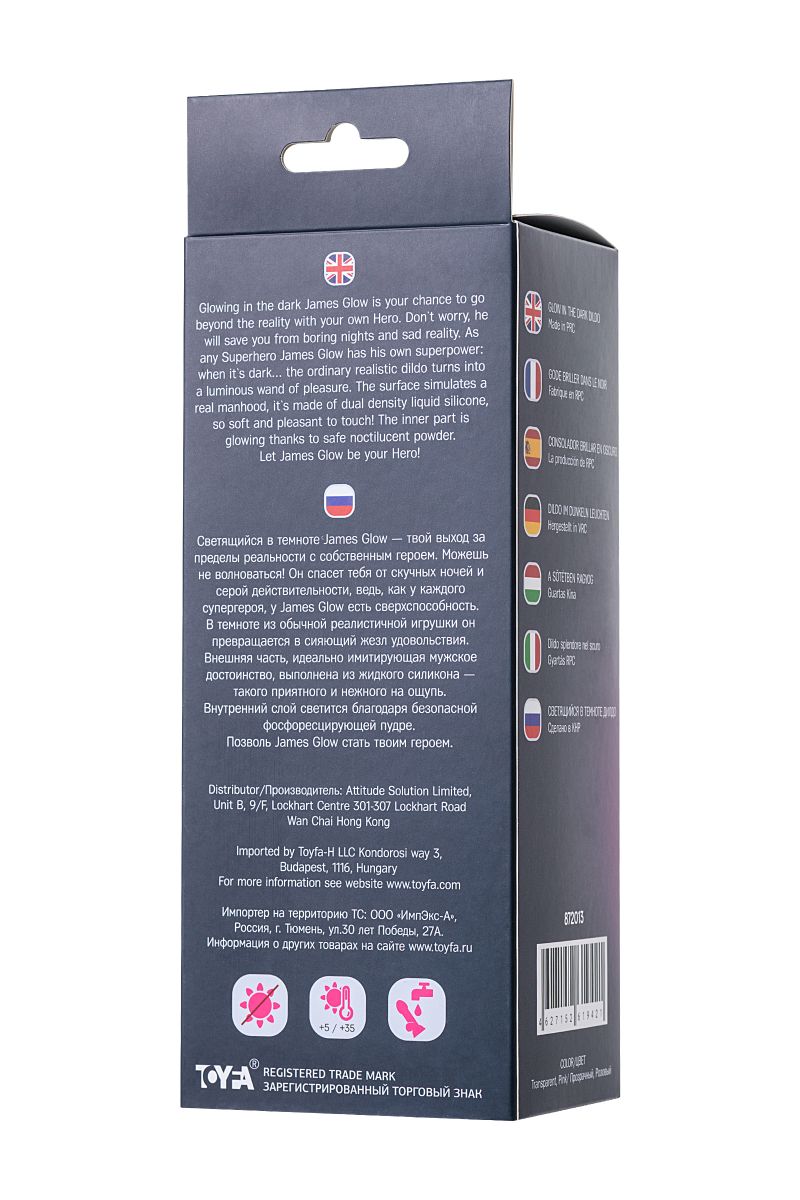 Светящийся в темноте James Glow — твой выход за пределы реальности с собственным героем. Можешь не волноваться! Он спасет тебя от скучных ночей и серой действительности, ведь, как у каждого супергероя, у James Glow есть сверхспособность. В темноте из обычной реалистичной игрушки он превращается в сияющий жезл удовольствия. Внешняя часть, идеально имитирующая мужское достоинство, выполнена из жидкого силикона — такого приятного и нежного на ощупь. Внутренний слой светится благодаря безопасной фосфоресцирующей пудре. Позволь James Glow стать твоим героем. Рабочая длина - 13 см.