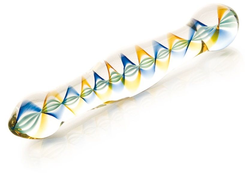 Этот двухсторонний стимулятор – красивый инструмент для красивого секса. Внутри тельца закручена яркая многоцветная спираль, отчего фаллос выглядит сияющим. Обе головки, и каплевидная, и шарообразная, отличаются большими размерами. Конечно же, почувствовать их внутри лона – это уже колоссальное удовольствие. Скольжение же гладкой секс-игрушки с плавными формами приведёт вас к яркой разрядке.
