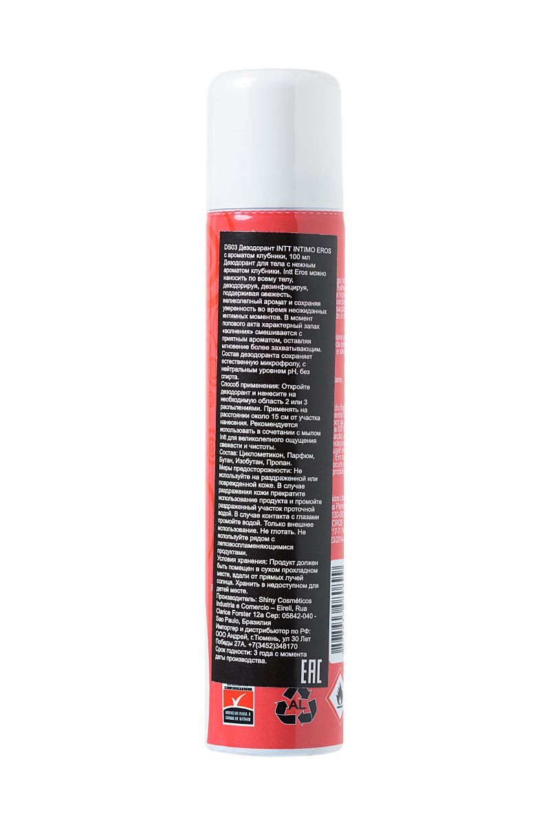 Дезодорант для интимной гигиены Intt Intimo Eros — ваш источник свежести на весь день. Подходит для ежедневного использования. Дарит ощущение свежести с тонким ароматом клубники. Просто нанесите спрей после душа на сухую кожу. Поддерживает нейтральный pH и ухаживает. Благодаря безопасной формуле без спирта обеспечивает бережный уход за интимной зоной, дезодорирует и дезинфицирует. Не вызывает аллергии. Усиливает эмоции от близости. Возбуждающий аромат клубники раскрывается во время секса и помогает полностью раскрепоститься и отдаться страсти. Подарите себе новые ощущения с INTT.