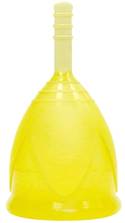 Выпускается в двух размерах: размер S подходит для скудных выделений, размер L подходит для обильных выделений. Рекомендуется приобрести оба варианта чаш на разные дни менструации, а также, чтобы иметь запасную чистую чашу, если нужно поменять её вне дома.