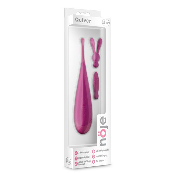 Noje Quiver - это высокочастотный вибратор с 7 вибрирующими функциями. Он представлен в комплекте с двумя силиконовыми насадками, дающими вам множество захватывающих ощущений. Используйте Quiver без насадки для прямых, сфокусированных колебаний. Используйте внутреннюю кривую насадки для более мягких, постукивающих ощущений. Не требует батареек и заряжается с помощью USB-провода. Водонепроницаем.
