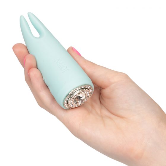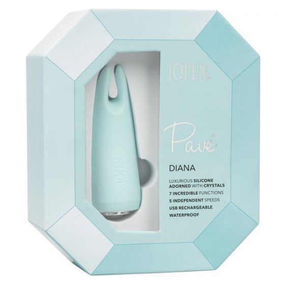 Нежно-голубой вибромассажер для стимуляции клитора Pave Diana. Нежные ушки подарят самый чувственный клиторальный массаж из всех возможных. Вибратор перезаряжаем, водонепроницаем, имеет 7 режимов вибрации и 5 скоростей, управляемых кнопкой-кристаллом в основании.