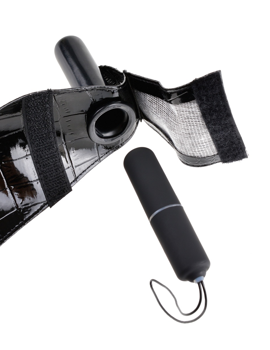 Черные виниловые трусики-стринги, снабженные выносным элетро-контроллером в виде удобного пульта. Имеется 20 режимов вибрации, ее степень и мощность регулируется при помощи пульта дистанционного управления. Можно выбирать длину импульсов: длиннее и короче, а так же силу - сильнее и слабее.