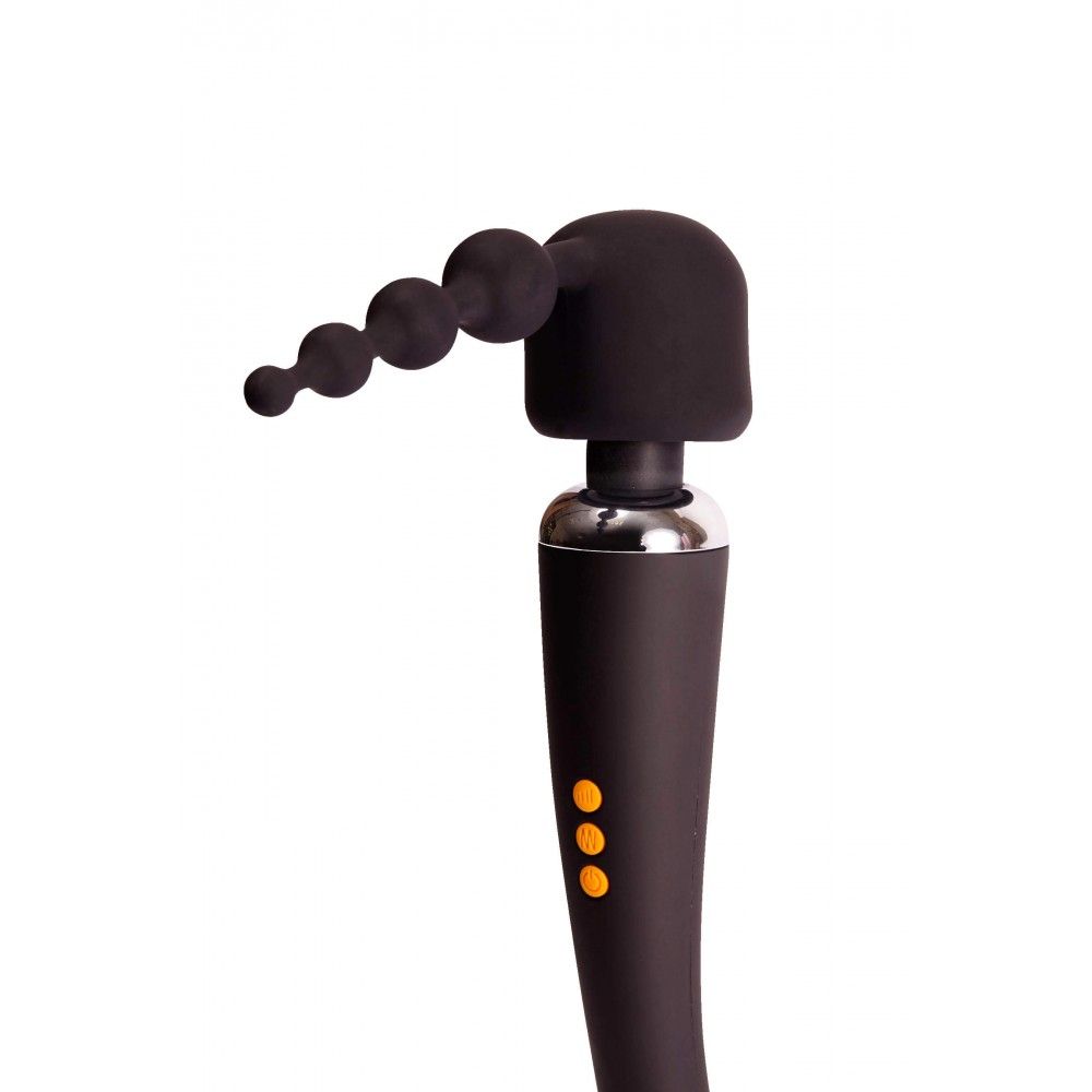 Перед вами массажер, благодаря которому ни одно чувствительное местечко не останется не обласканным! Supercharged Wand Set - это жезловый вибратор с 3 сменными насадками, каждая из которых выполнена из нежнейшего, бархатистого на ощупь силикона. Вибратор имеет 10 скоростей и 20 режимов вибрации. С ним можно снять усталость с шеи и ног после трудового дня, помассировать плечи партнёра или, что понравится вам гораздо больше, пройтись по груди, внутренней поверхности бёдер, клитору. Насадка с точками и волнистыми узорами сделает массаж ещё более чувственным. Насадка с двумя отростками (Вагинальным и клиторальным) подарит незабываемые ласки лона и клитора. Насадка с анальной цепочкой как следует позаботится о вашей попке! Игрушка заряжается с помощью прилагаемого USB-кабеля. Длина насадки с точками и волнами - 5,5 см., диаметр - 5,5 см. Длина вагинального отростка на двойной насадке - 12,7 см., диаметр - 3,6 см. Длина клиторального отростка на двойной насадке - 5,5 см., диаметр - 1,8 см. Длина анальной насадки - 16,5 см., диаметр - 0,6-2,7 см.