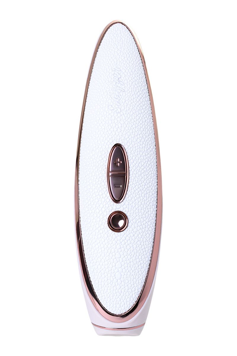 Satisfyer Luxury Prêt-à-porter – элегантный перезаряжаемый инновационный клиторальный стимулятор, сочетающий в себе вакуумно-волновое воздействие и вибрацию. В отделке игрушки используется материалы высшего качества: натуральная кожа и покрытие из золота. Идеальный стимулятор для стимуляции клитора за счет воздействия с помощью вакуума, давления воздухом и вибрации. 11 режимов волновой пульсации и 10 мощной вибрации. Ультрамягкое кольцо из мягкого и шелковистого медицинского силикона обеспечит приятное соприкосновение с кожей и плотное прилегание. Удобное управление позволяет использовать все функции по-отдельности. Эргономичная форма позволит комфортно удерживать стимулятор в руке. Рекомендация от производителя: использовать вначале именно вакуумно-волновое воздействие и только затем вибрацию. Размеры насадки - 5,3 х 4 см. Важно! Девайс не является водонепроницаемым! Использование его в ванной или под душем недопустимо!