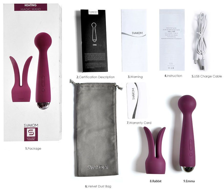 С этим фиолетовым вибромассажёром вы забудете обо всём на свете – вас полностью поглотит удовольствие. Бархатистая игрушка с головкой-шаром из нежнейшего силикона порадует вас вибрацией (6 восхитительных режимов на выбор) и чувственными проникновениями в лоно. Головка массажёра быстро нагревается до 38 градусов, благодаря чему введение Emma в вагину будет особенно комфортным. Если же поверх неё надеть насадку с мягкими ушками, стимулятор можно использовать не только для вагинального массажа – для стимуляции клитора, сосков, шеи, мошонки партнёра. Emma является перезаряжаемым вибратором. Причём для зарядки через USB требуется только 2 часа, а работает он до 48 часов! Наслаждаться ласками можно и вне спальни: корпус массажёра водонепроницаем на все 100%.