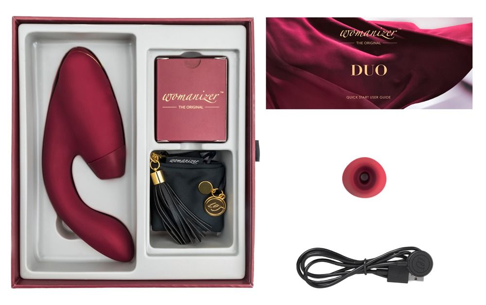 Неважно, являетесь ли вы взыскательной ценительницей удовольствий или просто ищете новых ощущений — Womanizer Duo поднимет Вас к вершинам оргазмических ощущений снова и снова благодаря принципу одновременной стимуляции. DUO имеет клиторальный стимулятор, выполненный в форме традиционного Womanizer – он мягко ласкает клитор с помощью технологии Pleasure Air. Кроме того, у DUO есть мощный вибратор, который адаптируется к форме Вашего тела, чтобы идеально стимулировать Ваши самые важные точки. 10 режимов вибрации и 12 скоростей. Рабочая длина отростка - 11 см., диаметр - 3,5 см.