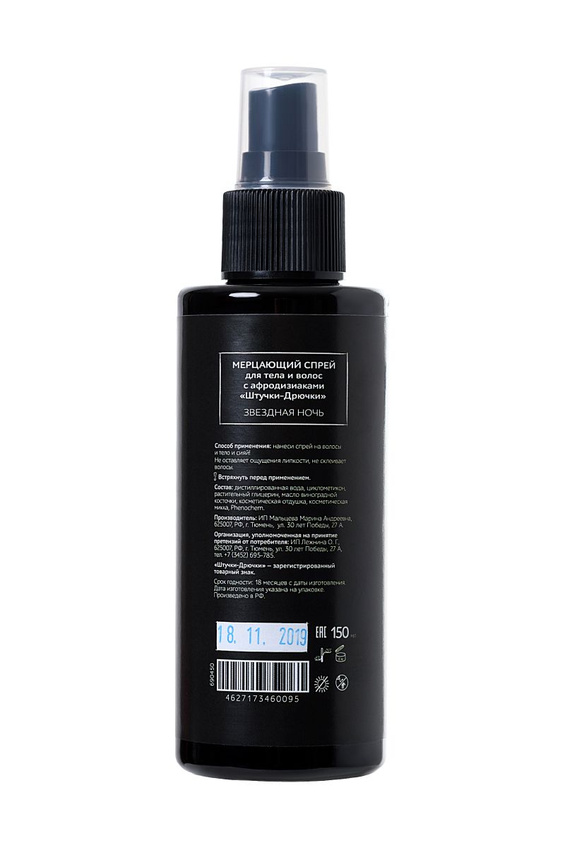 Простой способ собрать все комплименты — использовать мерцающий спрей Звездная ночь. Он мгновенно преобразит твой образ — одно нажатие — и твои волосы, руки и декольте притянут взгляд не хуже бриллиантового колье!