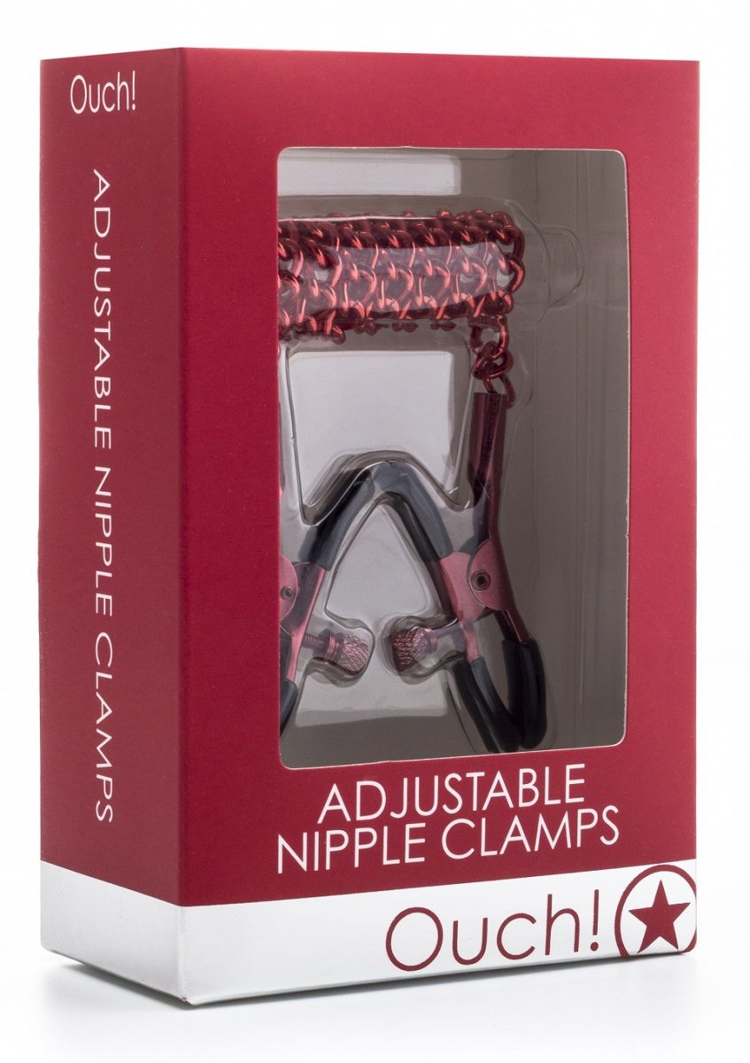 Зажимы на соски с красной цепочкой Shots Media BV Ouch! OU077RED
