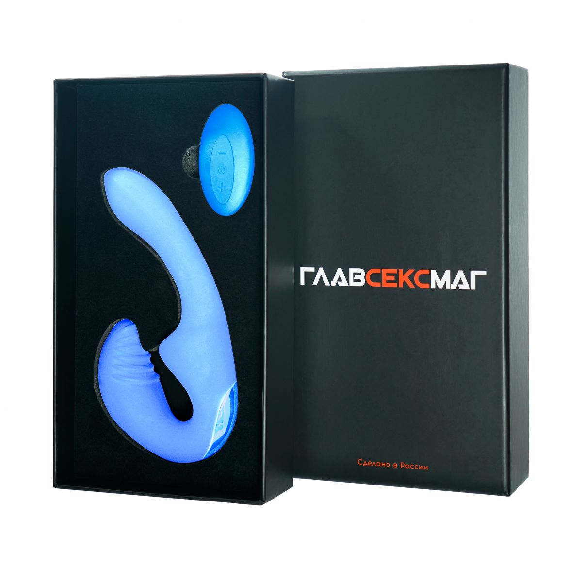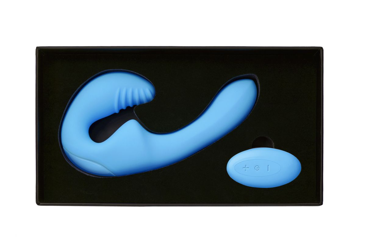 Безремневой анатомический страпон с дистанционным пультом управления в нежном голубом исполнении. Удобный и многофункциональный страпон. Работает от пульта управления и без пульта. 3 интенсивности вибрации, 10 режимов вибрации. Рабочая длина - 9 см. Длина вагинальной пробки - 7 см., диаметр - 4 см.