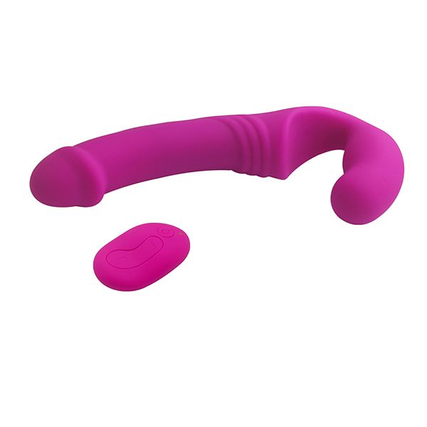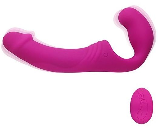 Безремневой вибрострапон с дистанционным пультом управления обеспечит стимуляцию не только влагалища и анального отверстия, но и чувствительного клитора. Страпон имеет 10 режимов вибрации, которые управляются как кнопкой в средней части игрушки, так и на пульте управления. Страпон имеет специальную форму, благодаря которой он надежно остается на месте, при этом стимулируя точку G. Страпон работает от провода USB (в комплекте). Рабочая длина - 14,3 см., диаметр - 3,9 см. Длина вагинальной пробки - 8,2 см., диаметр - 3,5 см.