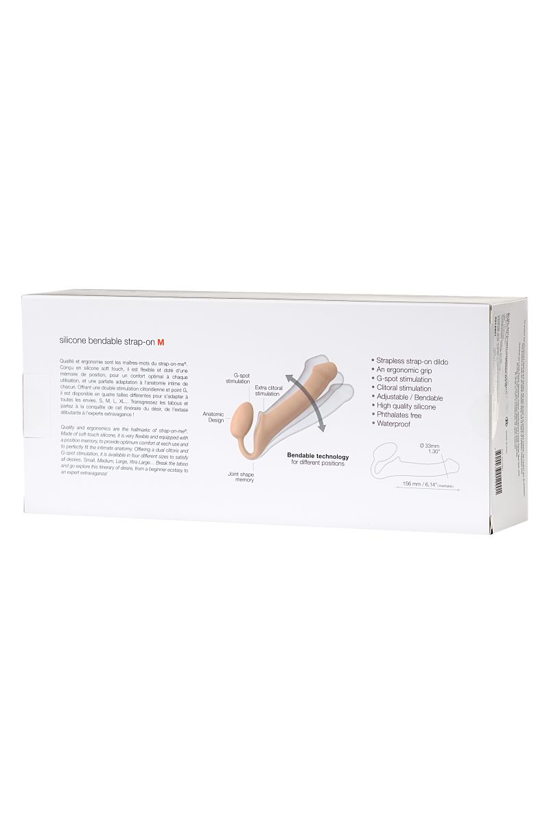 Пеггинг, волнующая смена ролей, эйфория, граничащая с безумством — с безремневым полуреалистичным страпоном Strap-on-me изучение новых сторон сексуальности станет любимым занятием вашей пары. Семь лет производитель собирал данные гинекологических исследований и УЗИ малого таза, чтобы разработать анатомическую форму страпонов, которая подойдет женщинам с любыми особенностями строения вагинального канала. Долгие годы продумывался идеальный функционал и подбирался материал, который с первого касания заявит об исключительности игрушки. Зато сегодня Strap-on-me может похвастаться безукоризненными техническими характеристиками. Его регулируемая форма запоминает оптимальное для вас положение. Крепление, стимулирующее G-точку активной участницы, и широкое основание с небольшим выступом для дополнительных ласк клитора надежно фиксирует страпон даже во время экспрессивных игр. Основная часть страпона с гибким стволом адаптируется под потребности пассивного партнера и уделяет пристальное внимание его эрогенным точкам. Больше никаких табу и гендерных границ — только удовольствие и воплощение в жизнь невообразимых желаний. -Регулируемая технология -3-слойный материал: гибкий внутренний стержень, жесткий силиконовый слой и дополнительный верхний слой из гипоаллергенного, бархатистого на ощупь силикона Soft-touch -Ручное литье без швов и класс водонепроницаемости IPX7 -Мешочек для хранения в комплекте Strap-on-me — отличный повод стать ближе! Рабочая длина - 15,6 см.