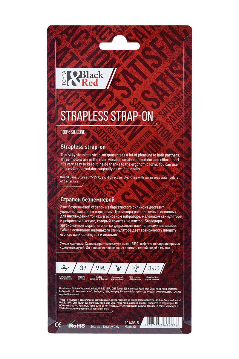 Чёрный безремневой страпон с вибрацией ToyFa 901408-5