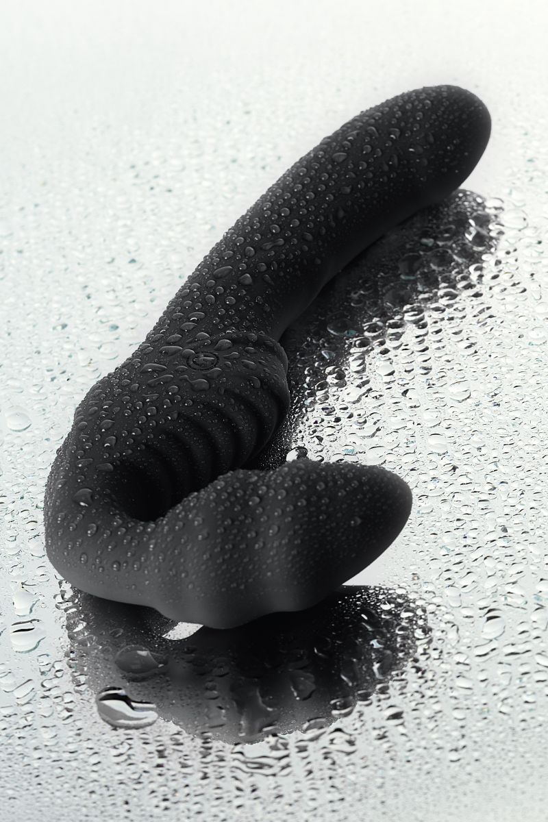 Чёрный безремневой страпон с вибрацией