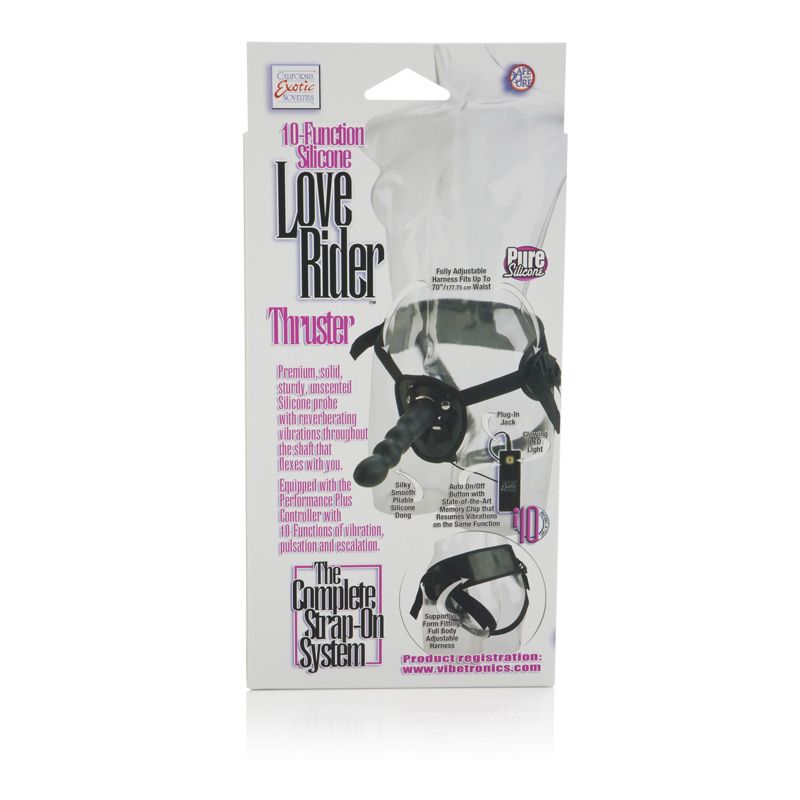 Страпон Love Rider Thruster - универсальный страпон на регулируемых ремнях, снабжен надёжным металлическим кольцом-креплением, эргономичным ребристым вибратором премиум-класса из шелковистого, гладкого, гибкого, но упругого материала без запаха. Вибратор легко снимается, оснащён присоской, поэтому им можно пользоваться отдельно, вибратор мультифункциональный – 10 функций вибрации, пульсации и движения, оборудован выносным пультом, функцией авто включения/выключения, а также функцией запоминания последней выбранной программы.