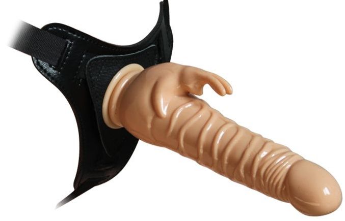 Телесный страпон на чёрных трусиках Howells 10 Mode Vibrations 8.5 Harness Rabbit Dong 92004flesh (19 см)