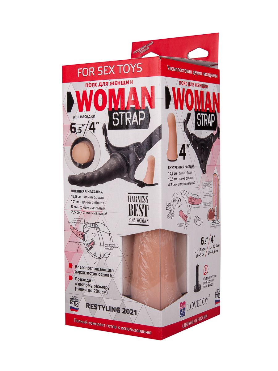 Женский страпон чёрный с чёрной насадкой и вагинальной пробкой