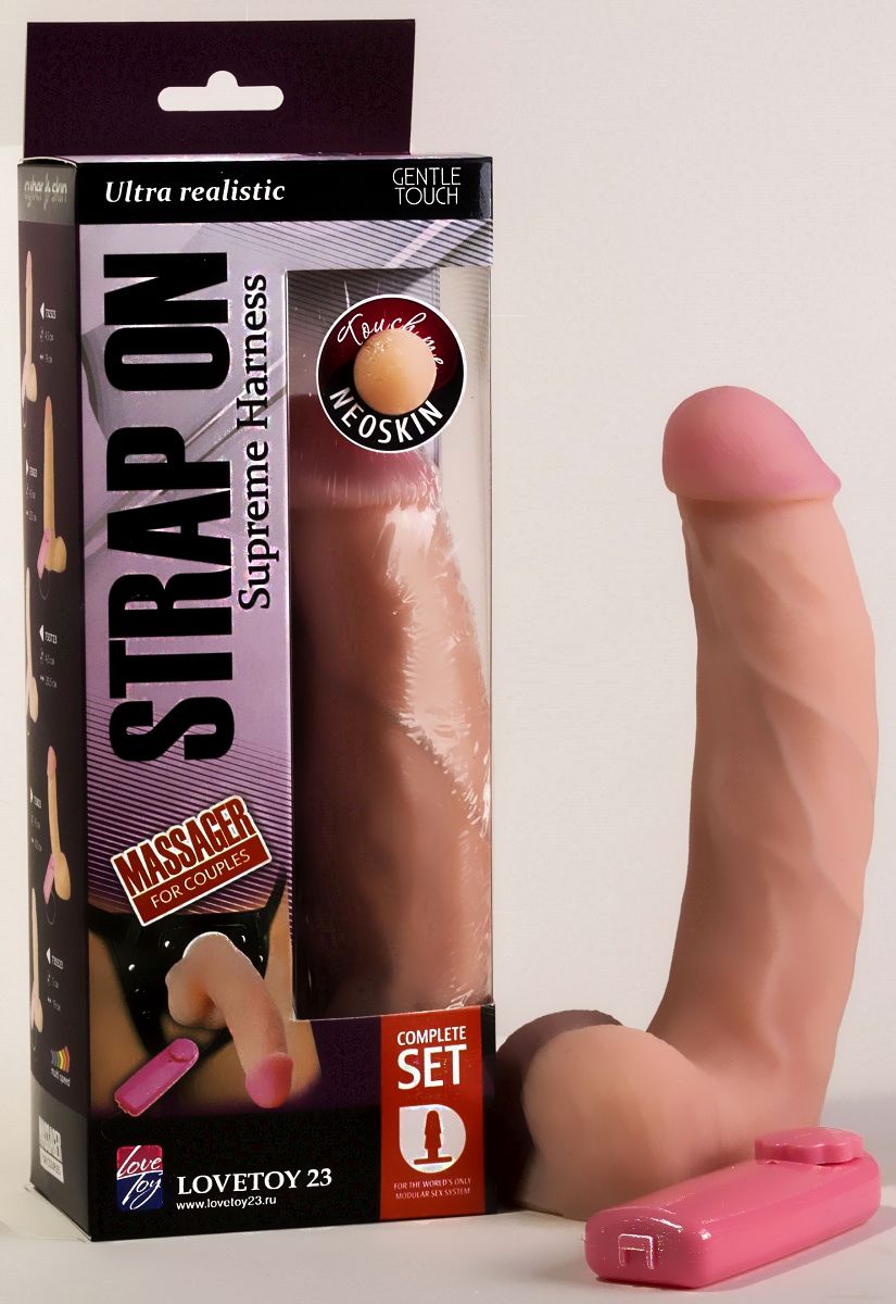 Эта секс-игрушка, состоящая из трусиков Harness и реалистичной насадки из неоскин, поможет вашей паре получить новый сексуальный опыт. Затянув трусики на бёдрах при помощи регулируемых ремешков и защёлкнув насадку-фаллос на плуге, вы станете «верхней» - той, что дарит чувственные проникновения. Насадка с пышной мошонкой, розовой головкой и бархатистой поверхностью оснащена мультискоростным виброэлементом, управлять которым вы сможете при помощи выносного пульта. Нежные толчки, дразнящая вибрация – вашему партнёру/партнёрше точно понравится эта страпон-игра!