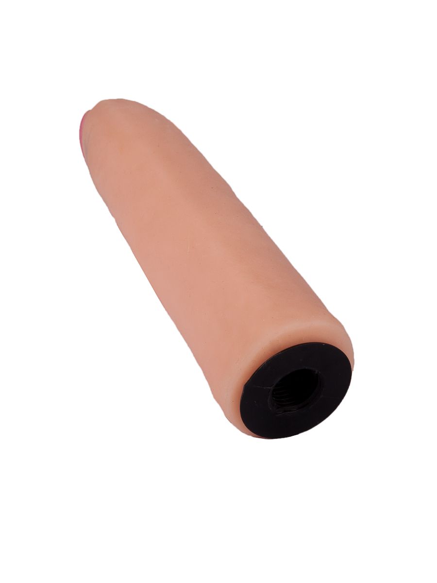 Насадка-фаллоимитатор телесного цвета на кожаных трусиках