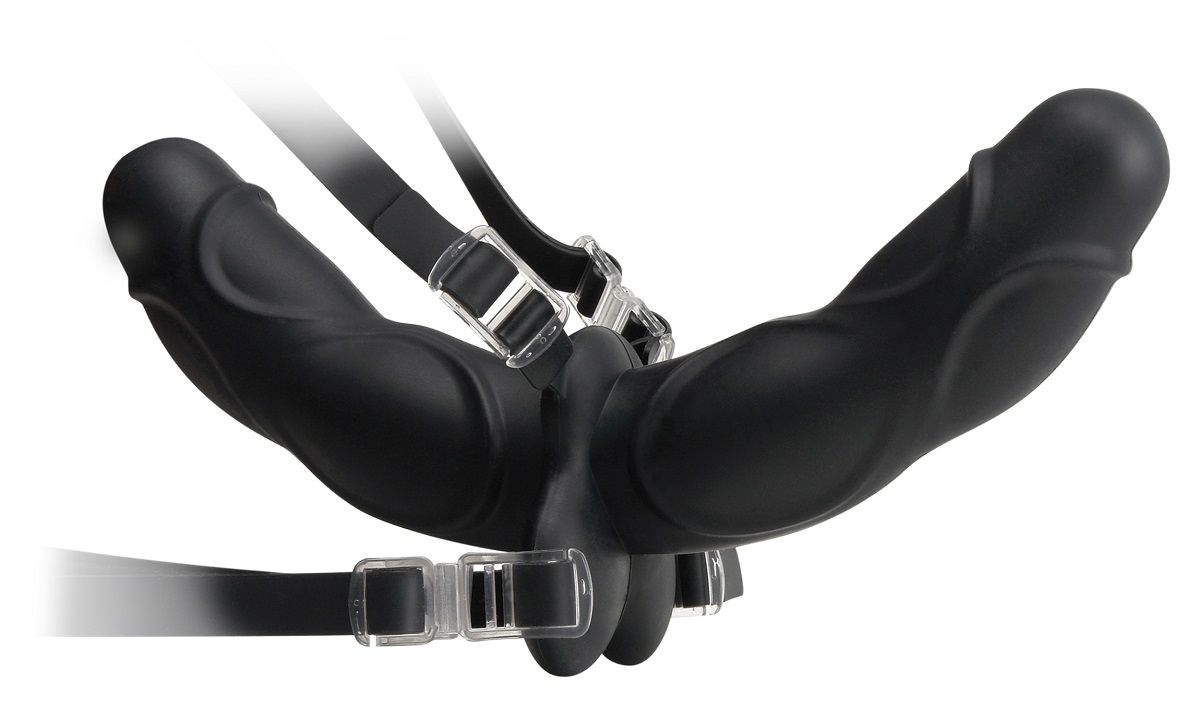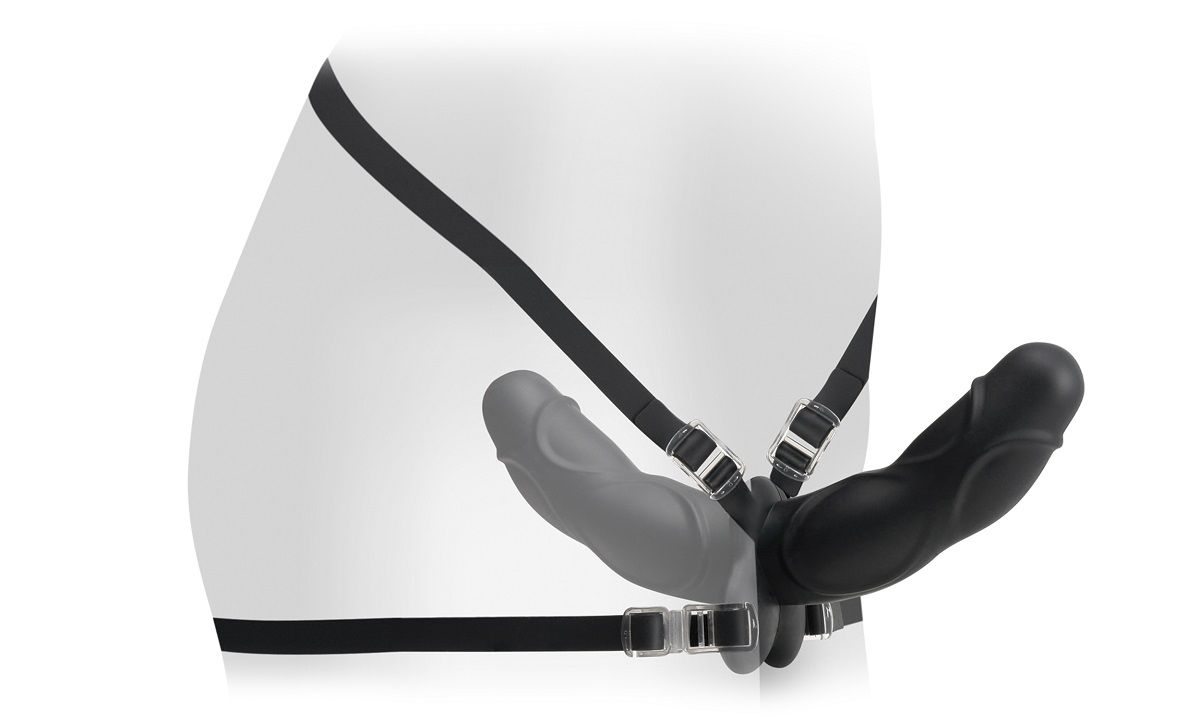 Черный двухсторонний страпон (с внутренним и внешним фаллоимитатором). Может использоваться как с трусиками так и без них. Водонепроницаемый. Фаллоимитатор с нежным рельефом выполнен из высококачественного гипоаллергенного медицинского силикона, бархатистого и очень приятного на ощупь. Для крепления к телу старпон оснащен прозрачными силиконовыми ремешками регулируемого размера. В подарок от производителя в комплекте силиконовая закрытая маска универсального размера. Цвет: черный. Материал: Silicone. Производитель: Pipedream, США. Длина вагинальной пробки - 12,1 см., диаметр - 3,8 см.