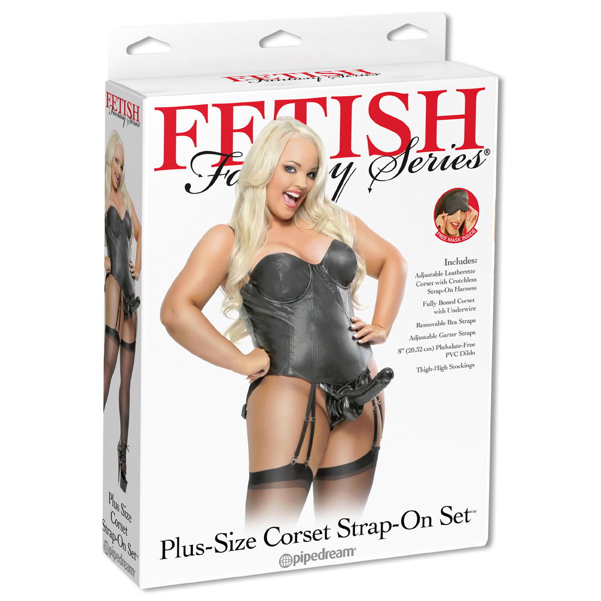 Корсет со страпоном для пышнотелых красоток. Виниловый корсет регулируется в бретелях и за счет шнуровки на спине, его черный цвет подчеркивает откровенную сексуальность своей обладательницы. Конечно же, страпон обладает особым креплением для эрегированного большого черного фаллоимитатора с мошонкой в тон всему наряду (может использоваться как автономный девайс). Этот корсет со страпоном сделает секс еще желаннее и ярче. Новые игры, обмен ролями и скучная рутина превратится в сногсшибательное сексуальное приключение. Страпон поставляется вместе с подарком – маской для глаз для особой яркости тактильных ощущений. черный Q (XL-XXL)
