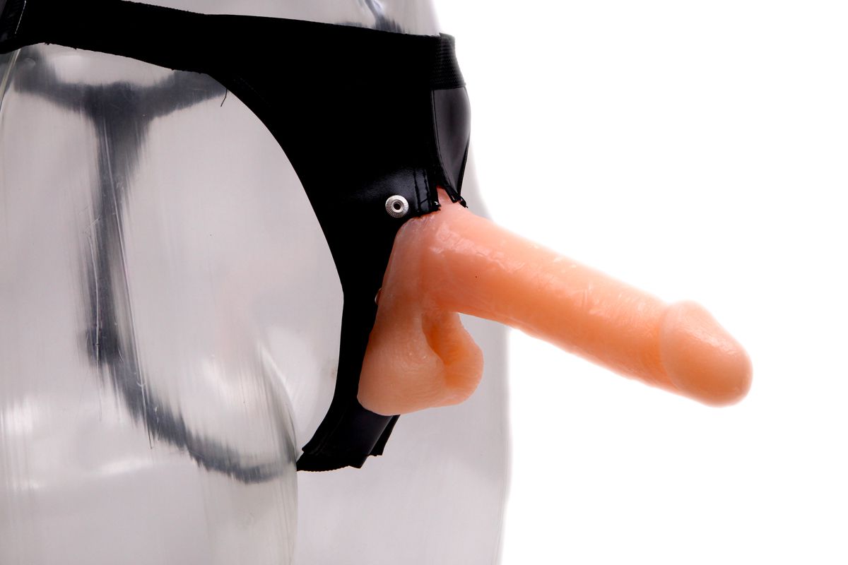Эти трусики из кожзаменителя плотно обтянут ваши бёдра благодаря регулируемым ремешкам. В ту же секунду вы превратитесь из сексуальной партнерши в…партнёра, ведь внизу вас будет украшать большой напряженный фаллос с гладеньким тельцем и большой головкой. Этот страпон – идеальный способ примерить на себя роль активного партнера, а также инструмент для сладострастных лесбийских игр. Рабочая длина - 17см.